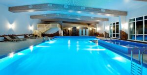 Да, открытый бассейн работает круглогодично. Температура воды 28-30 градусов.