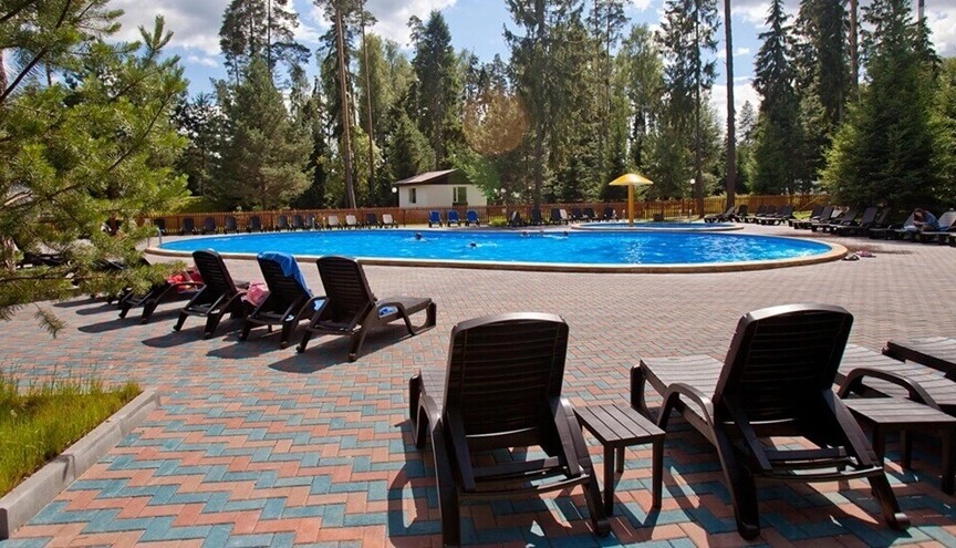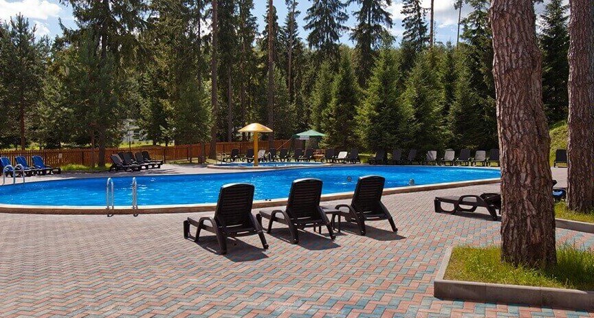 Открытый бассейн в отеле Кантри Резорт предлагает отличные условия для отдыха круглый год.